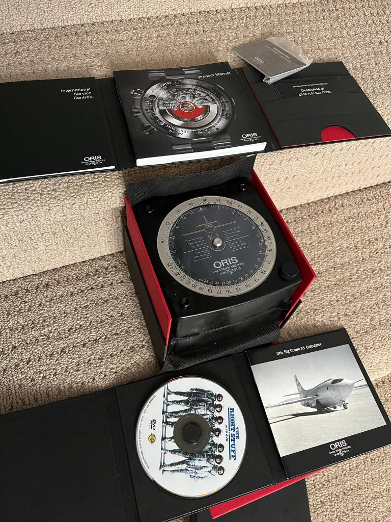 A special mention has to go to the packaging of this watch. Oris hasn’t skimped at all as they have included a special box with slide rule scale on top, a DVD of the movie “The Right Stuff”, certificate and documentation on the Bell X-1 aircraft.