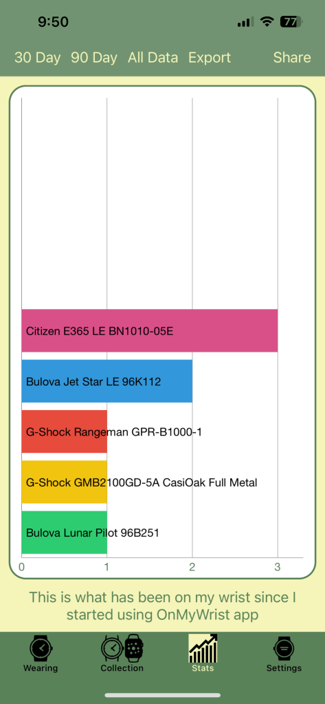 Well, for those of you that would like to track your collection and also keep stats on what you wear each day, then the OnMyWrist app is for you!