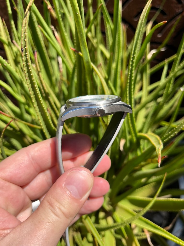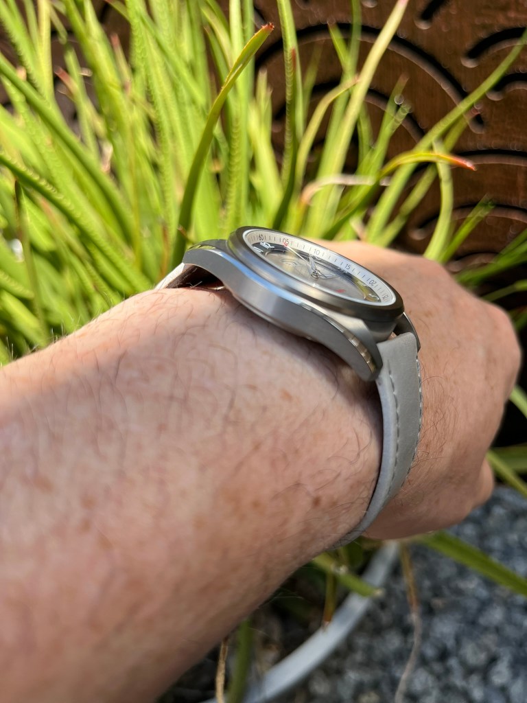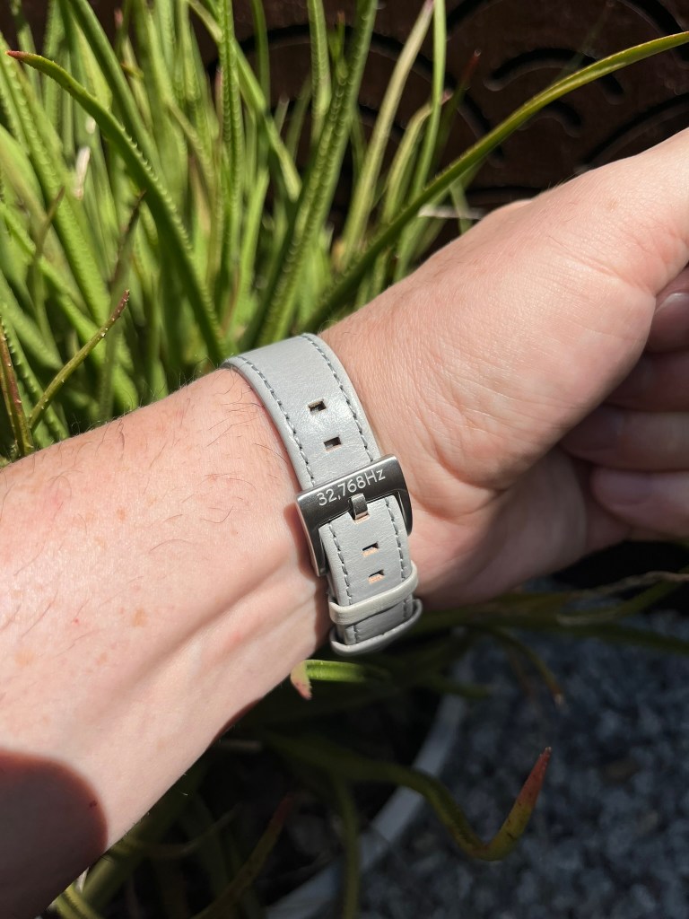 - Band: Leather strap with 32,768Hz signed titanium buckle (a nice touch)