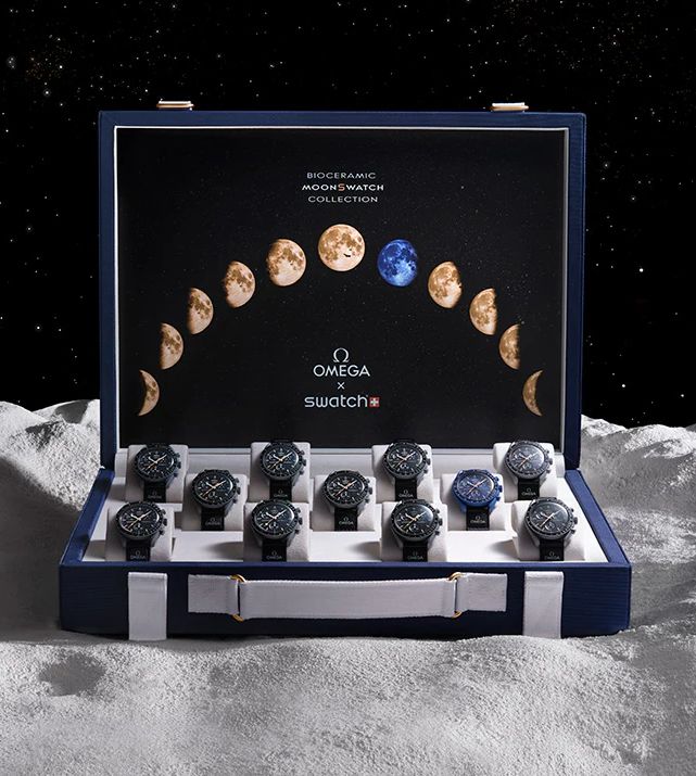 From February 12 – 24, OMEGA will auction 11 MoonSwatch Moonshine Gold suitcases through Sotheby’s, each containing all of the 11 OMEGA x Swatch “Mission to Moonshine Gold” timepieces.