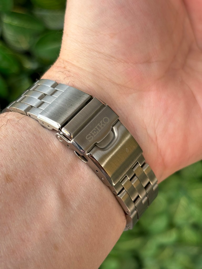 The five-link bracelet is an upgrade from traditional three-link bracelets, offering comfort, flexibility, and visual harmony with the timepiece. However, some may find the stamped clasp on the bracelet to be simple and lacking refinement.