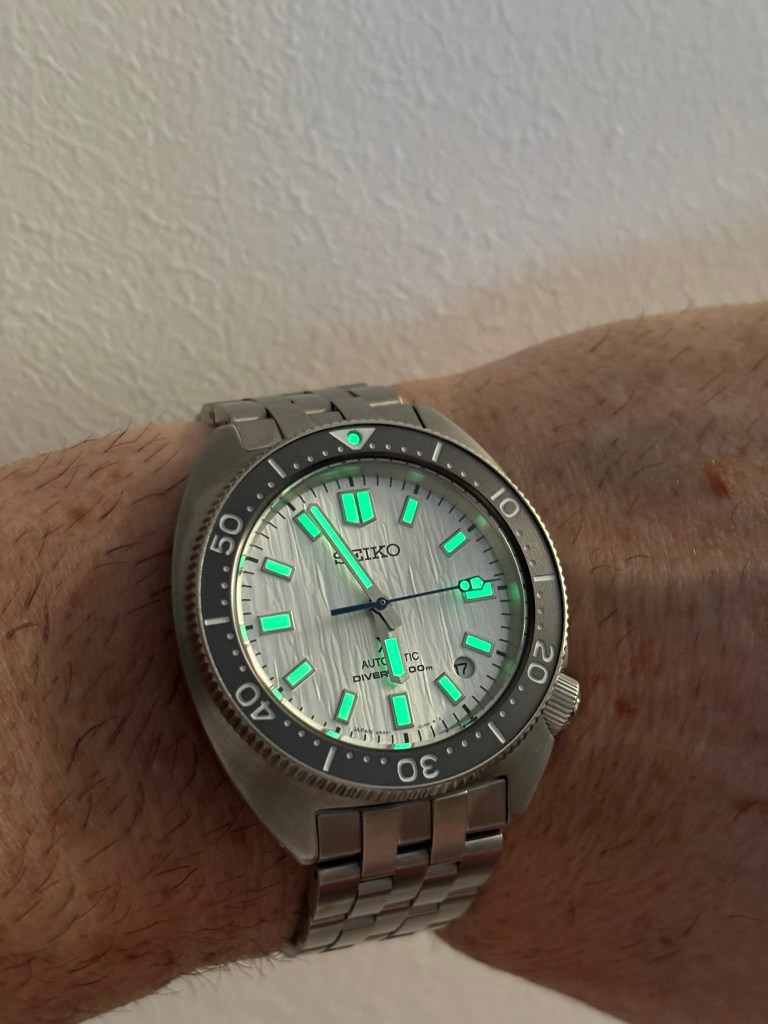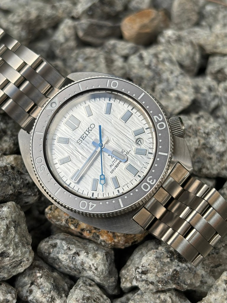 Starting with the most obvious aspect, that stunning textured silvery-white dial which exudes Arctic vibes, reminiscent of the polar caps, all protected by a sapphire crystal. We’ll add that the textured dial is very much in the some league as a Grand Seiko, a timepiece many thousands of dollars more than the SPB333J. Still on the topic of the dial, the delicately striated surface creates a unique depth that invites repeated looks. You would think that with this type of colouring that telling the time would be difficult, but we have to say, the hands are highly legible in any kind of lighting conditions, thank you to Seiko’s generous application of their Lumibrite on the hands and indices.