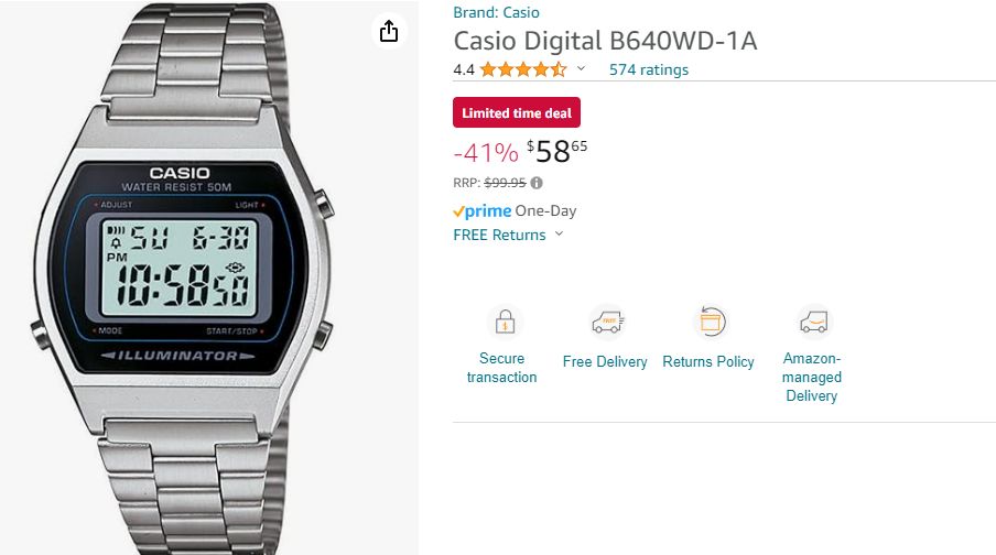 Last but not least in this curated list of limited time deals is the Casio B640WD-1A, priced at $58.65.
