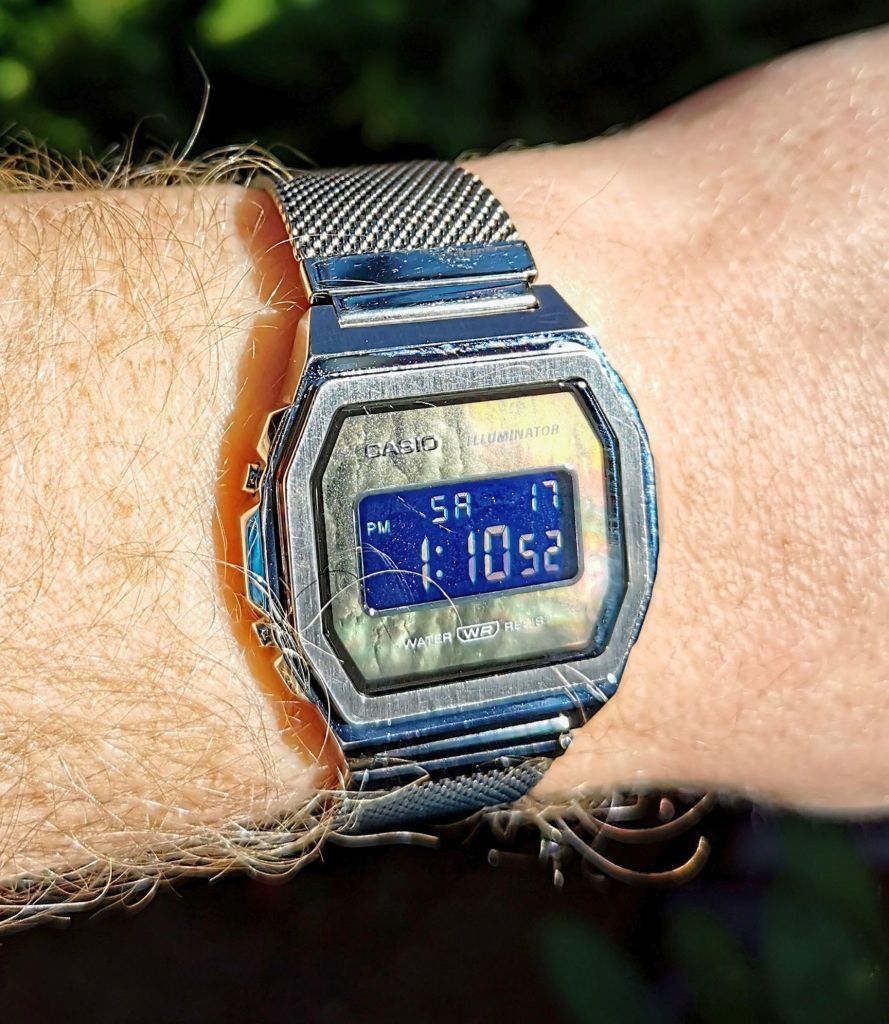 All three have multiple polished/brushed sections but the Casio is the clear standout when it comes to finishing. The polished ring around the screen and mother of pearl dial really make the A1000 feel miles ahead when it comes to finish quality.