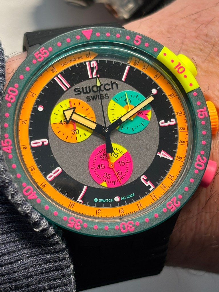 When Swatch dropped their new Neon collection, I was torn between two retro powerhouses: the Neon Emerald Chrono and the Neon Seppia. Both scream vintage cool, both pack serious color punch, but only one made me say: